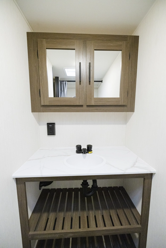 Looking for a lightweight RV perfect for solo travelers and couples? The Avenger 16RBX by Forest River is ideal with a simple, yet spacious design! Enjoy a front Walkaround, Camp queen bed with plenty of wardrobe space. Also nearby is a dinette that converts into an extra bed. The modern kitchen features a refrigerator, Large Stainless-Steel sink, two-burner stovetop, pantry and a microwave. In the rear is a full bathroom with plenty of linen storage.