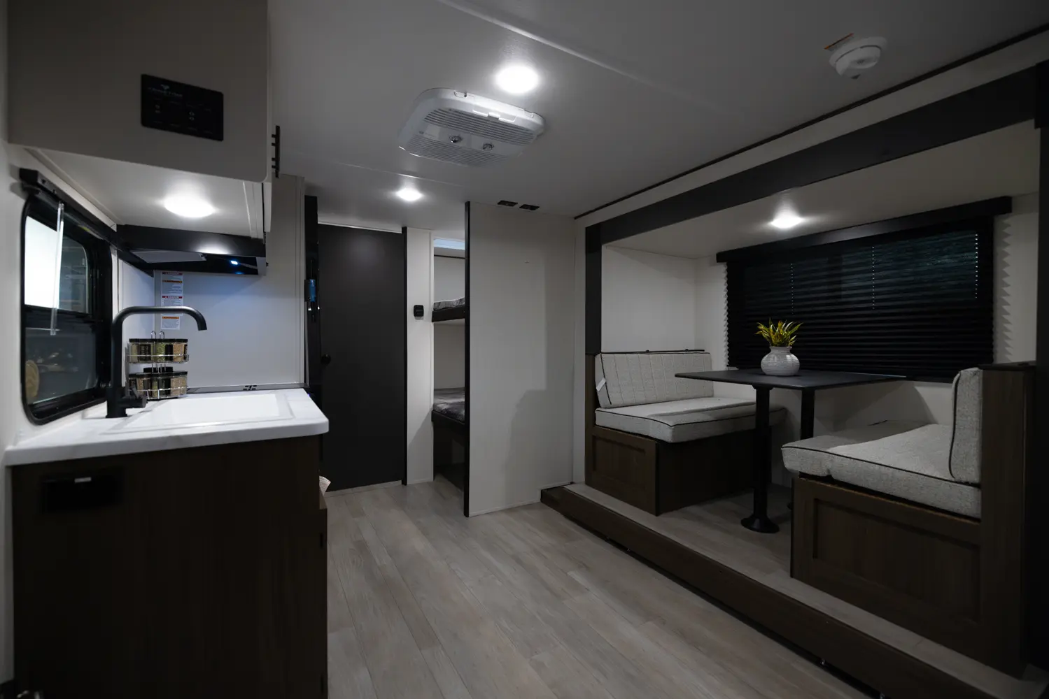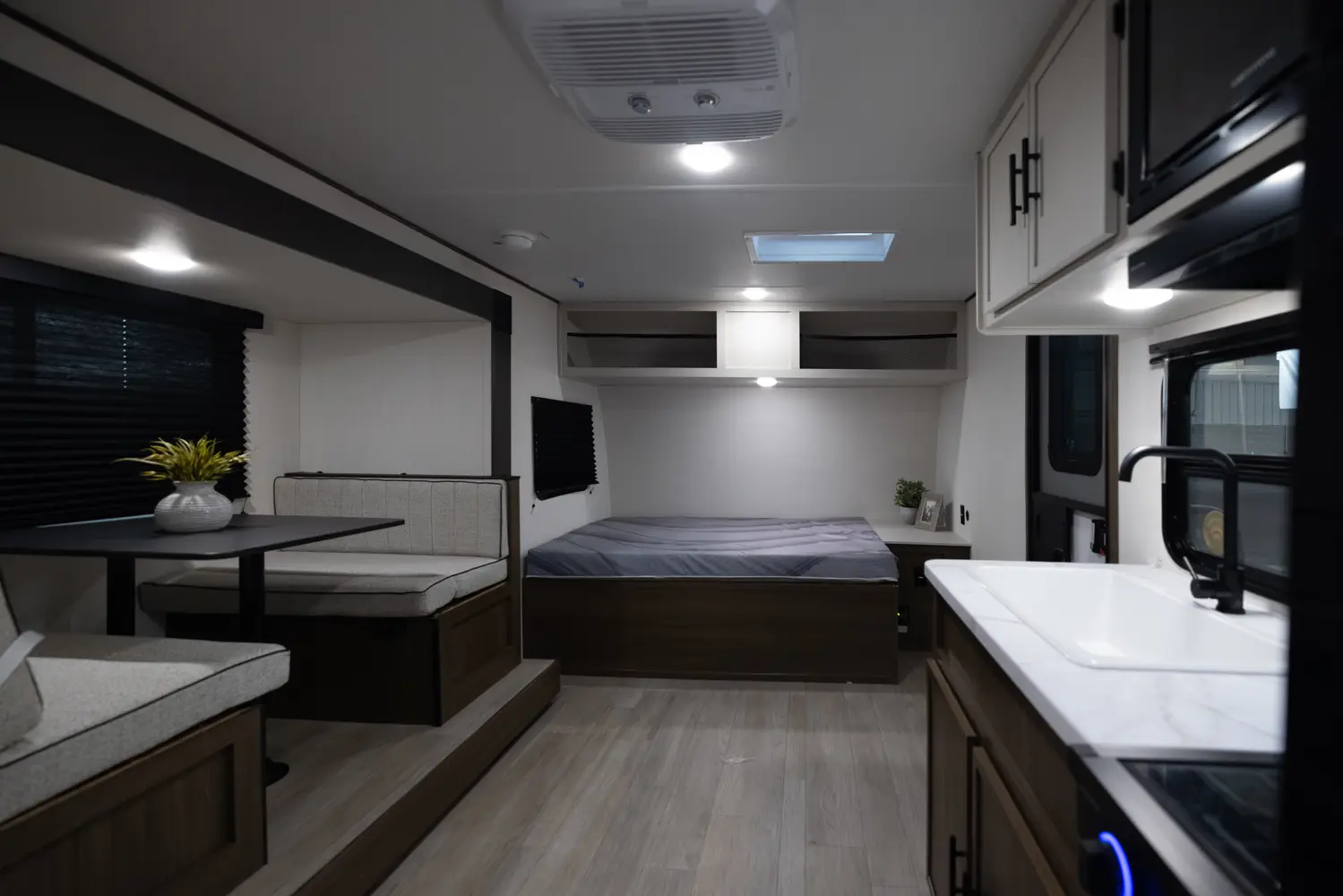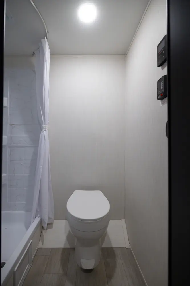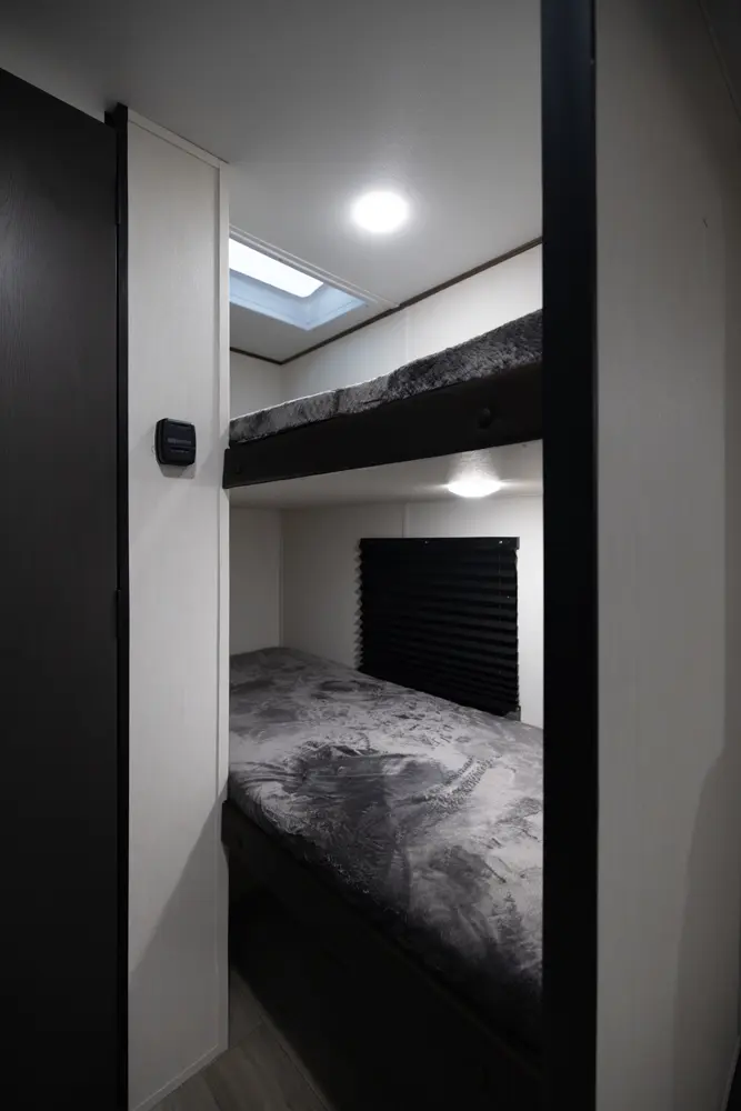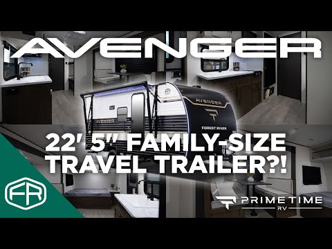 Looking for an easy-to-tow family travel trailer? The Avenger 17BHS by Forest River weighs just over 4,000 lbs! Enjoy a front queen bed with ample wardrobe space and a nightstand., The modern kitchen features a cooktop, microwave and a large 12-volt refrigerator. The dinette slide doubles as an extra bed and the rear bunk room is conveniently located next to the full bath. Perfect for family getaways!