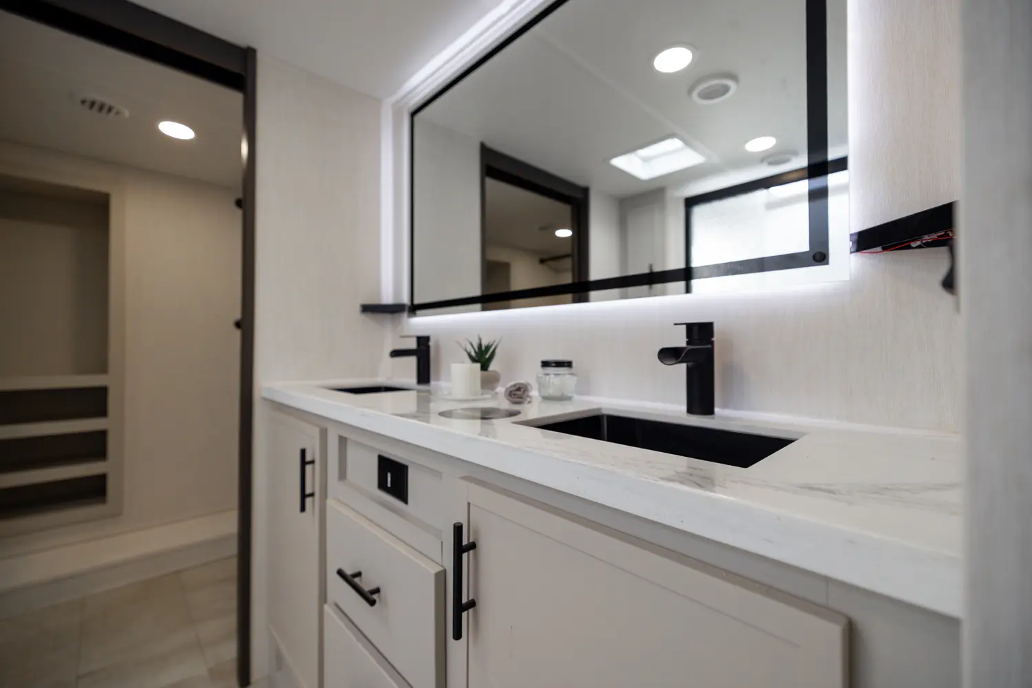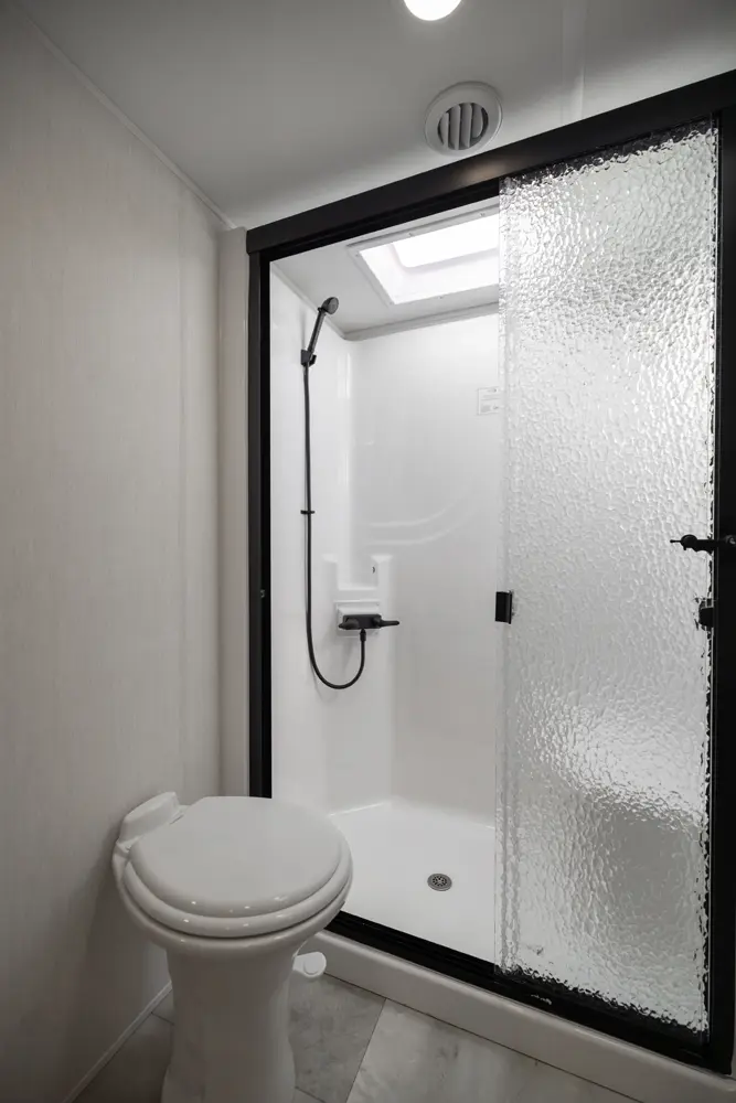• Heat Rated Solid Surface Countertops Throughout the Coach