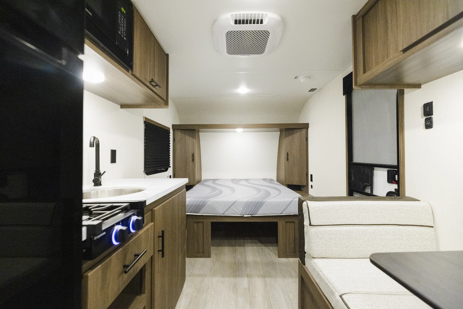 Looking for a lightweight RV perfect for solo travelers and couples? The Avenger 16RBX by Forest River is ideal with a simple, yet spacious design! Enjoy a front Walkaround, Camp queen bed with plenty of wardrobe space. Also nearby is a dinette that converts into an extra bed. The modern kitchen features a refrigerator, Large Stainless-Steel sink, two-burner stovetop, pantry and a microwave. In the rear is a full bathroom with plenty of linen storage.