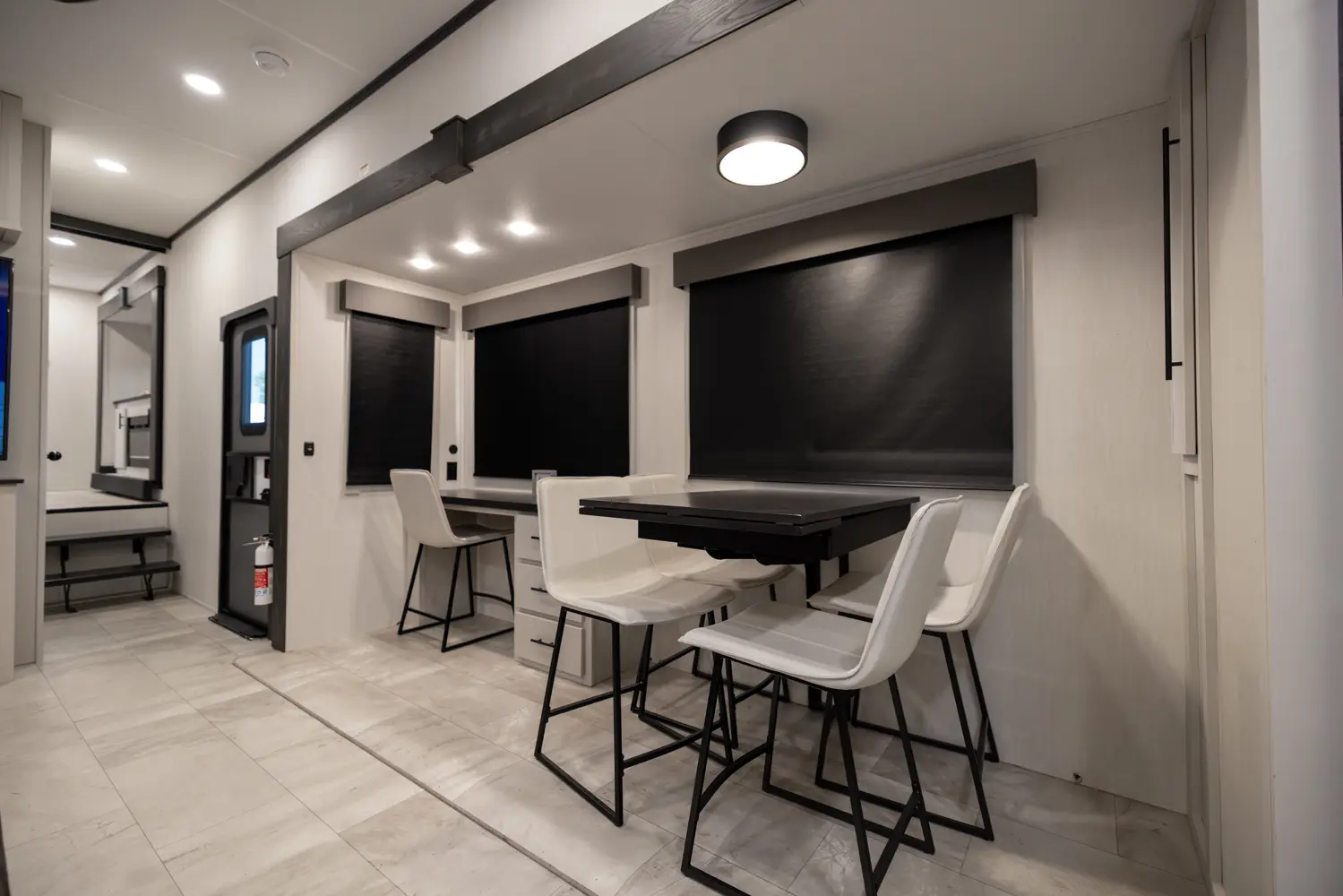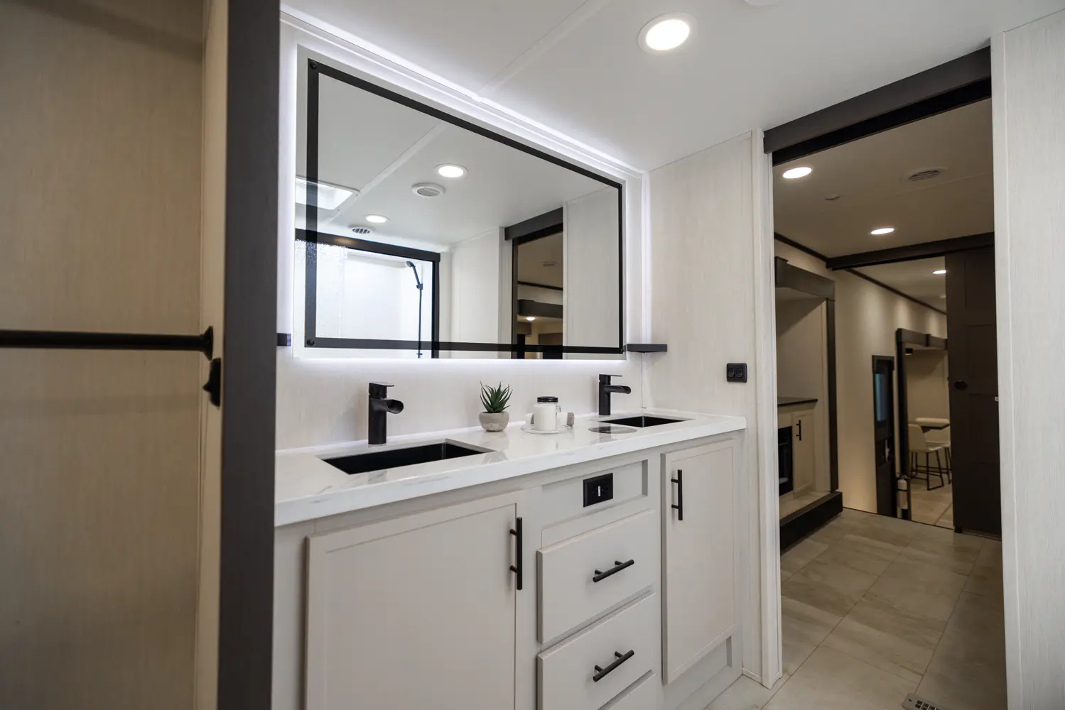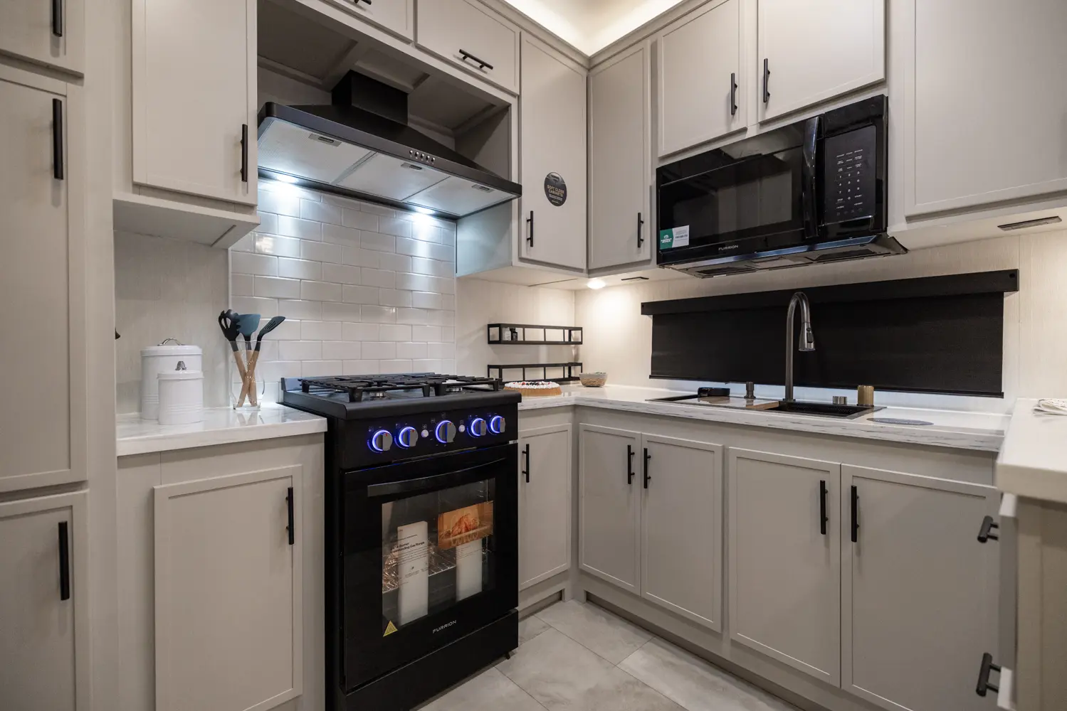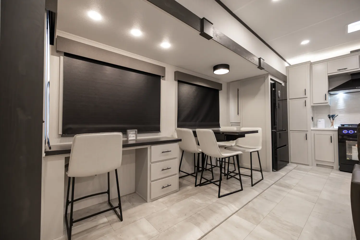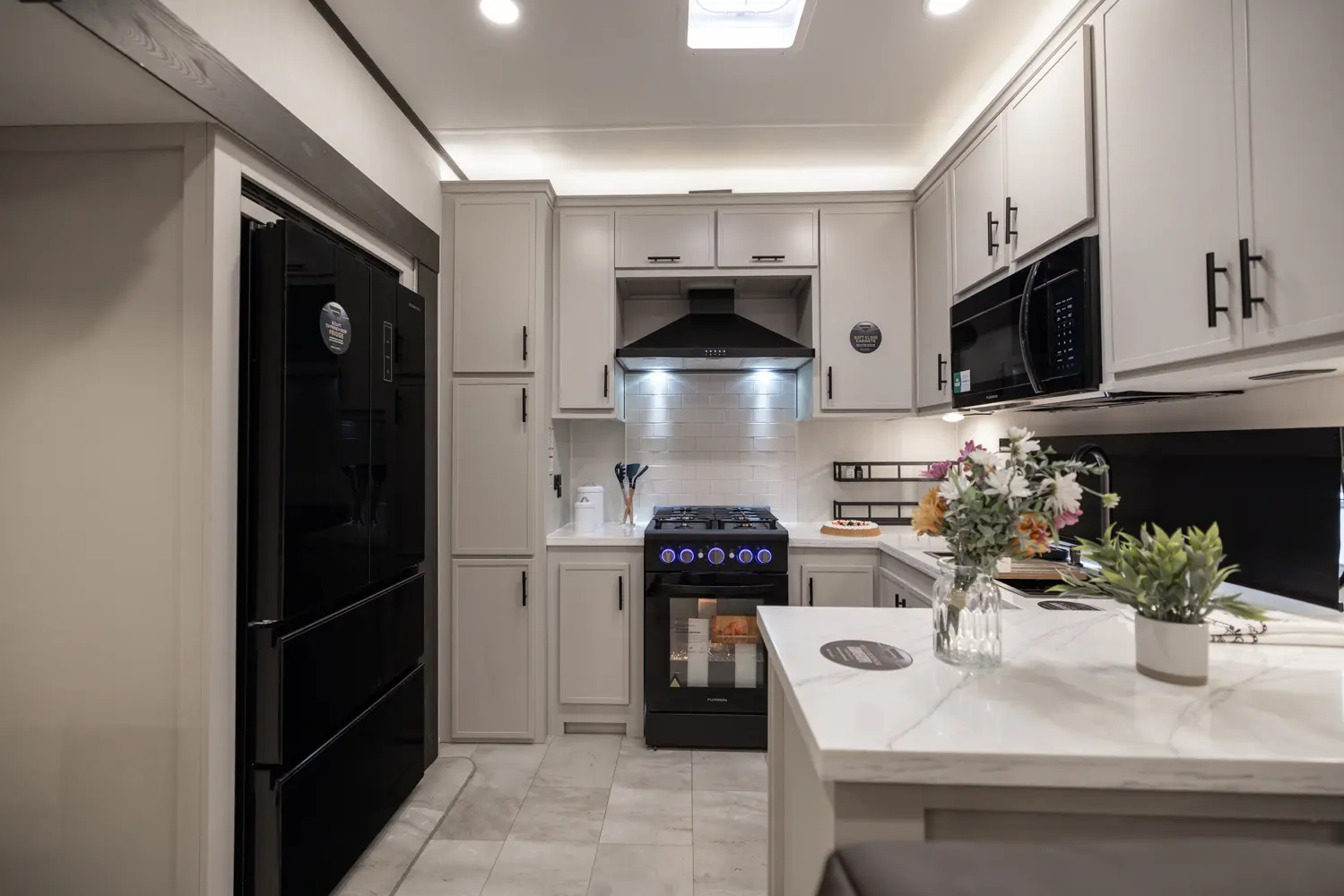 • Heat Rated Solid Surface Countertops Throughout the Coach